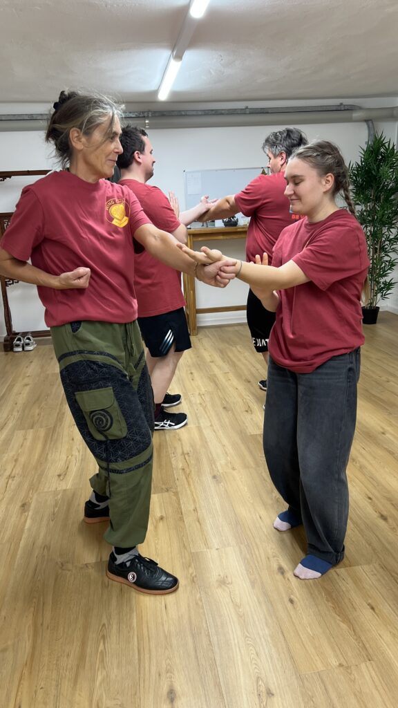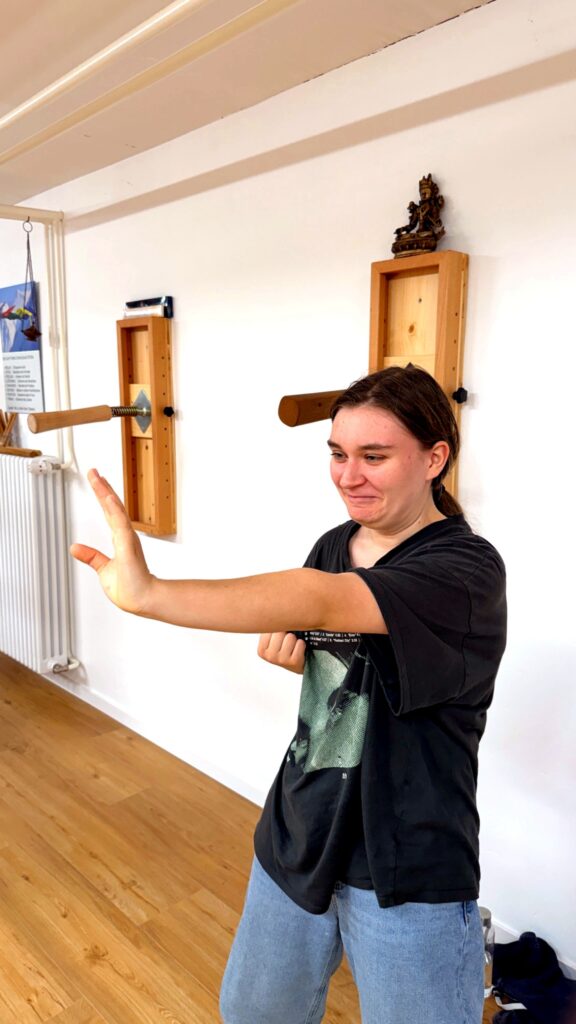 Trainiert wird ruhig, präzise und ohne unnötige Kraft – mit Fokus auf funktionierende Selbstverteidigung und persönliche Entwicklung.